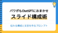 ChatGPTは、構成のベースを一瞬で出力してくれるので、白紙から書き始めるストレスを大幅に軽減できます。